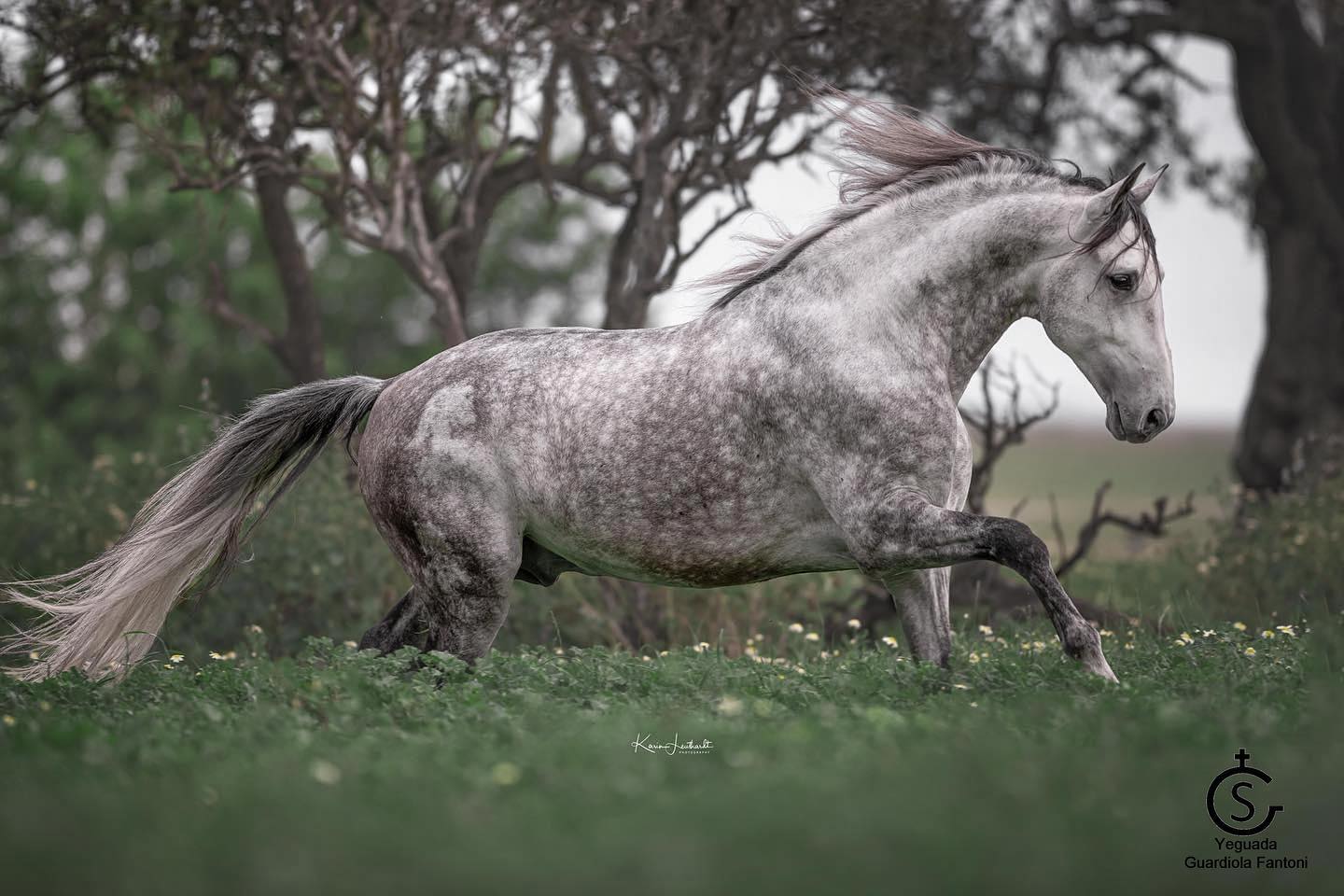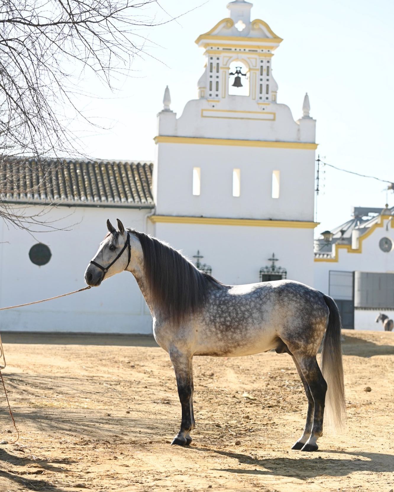 Cartujano Guardiola II Caballo PRE tordo pura línea Guardiola. Desciende de ejemplares legendarios como Barquito, Centella V, Escapada II o Maromo